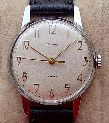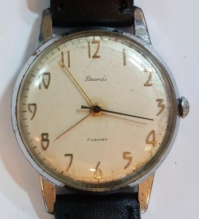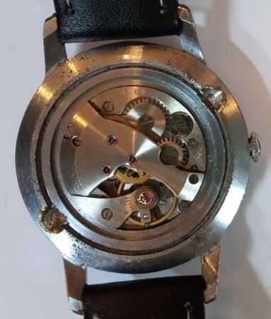 Mentions sur le calibre : n° de série (9016) sur un pont, logo de la fabrique de Penza (initiales dans un triangle) sur un autre.