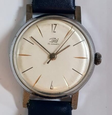 Mentions sur le calibre : ancien logo 3аря (en éventail) et n° de série (770929) sur le mécanisme, 2008 sur le pont