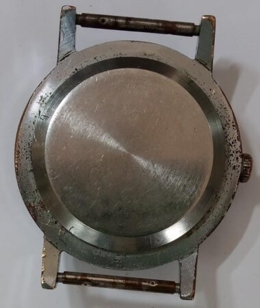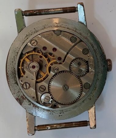Mentions sur le calibre : ЗИМ et 15 камней sur un pont, n° de série (16954) sur un autre, 2602 sur la platine