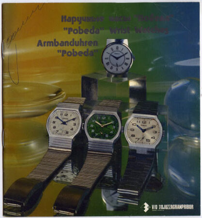 Ce modèle dans un catalogue d’époque : Catalogue export « POBEDA » du Vneshtorgizdat (1987), en couverture et à la page 3 :