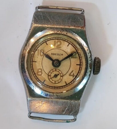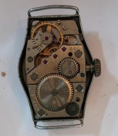 Mécanisme : Ce modèle n’avait alors pas de nom, c’est de mécanisme pour Zvezda (le rochet est marqué ainsi) ; c’est version soviétique du Lip T18 à 15 rubis qui sera appelé ultérieurement 1802.