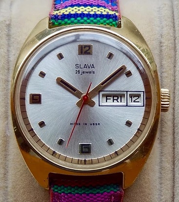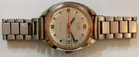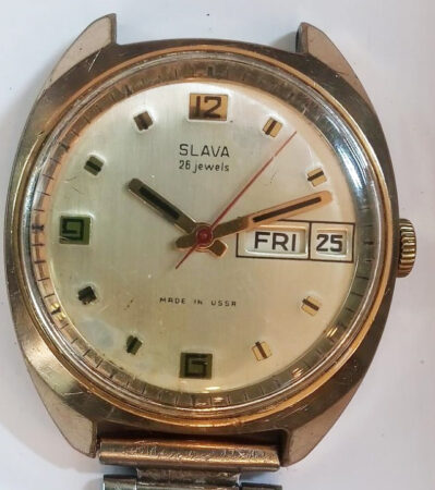 Avec un bracelet soviétique d’acier à boucle déployante marqué Славa: