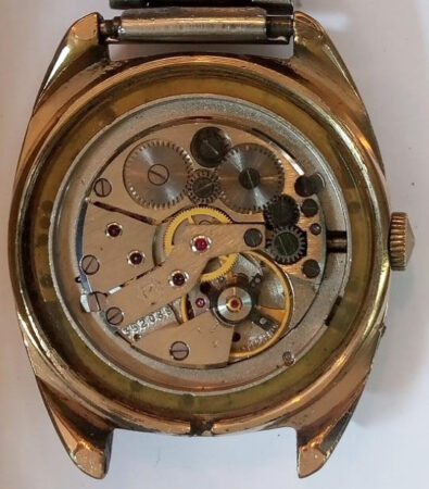Mentions sur le calibre : logo de la fabrique (un 2 dans un M) sur un pont, 2428 et n° de série (352085) sur la platine.