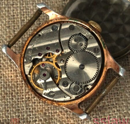 Mentions sur le calibre : ЗИМ et 17 камней sur un pont, n° de série (01817) sur un autre, 2602 sur la platine