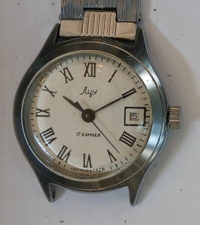 Mentions sur le calibre : L 1814 et 17 jewels sur un pont, logo Luch sur la platine
