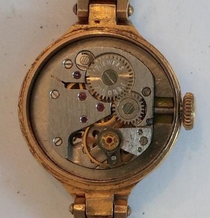 Boîtier en laiton plaqué or (poinçon AU sur le bord latéral droit) à fond clipsé