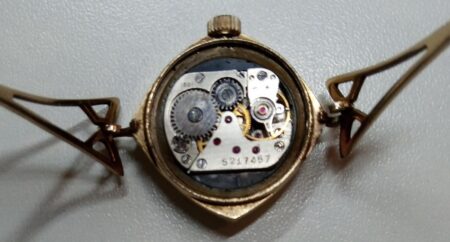 Mentions sur le calibre : N° de série (5217457) sur un pont, 1601 sur un autre, ogo de la fabrique sur la platine