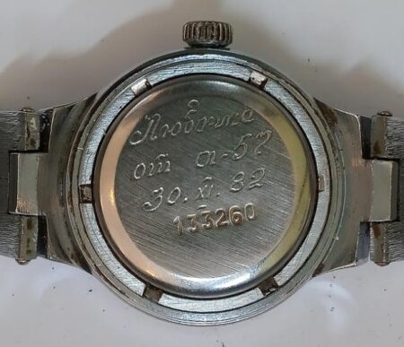 Bracelet d’origine, solidaire du boitier, avec un marquage qui n’est pas celui de la Fabrique de Minsk: