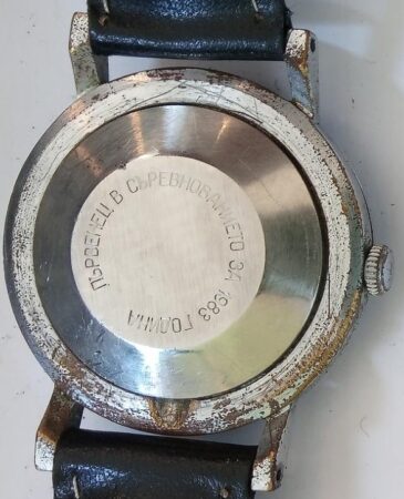 Gravure sur le fond : Първенец Съревнованието за 1983 година (en Bulgare : « Concours de [la municipalité de] Parvenets pour l’année 1983 »)