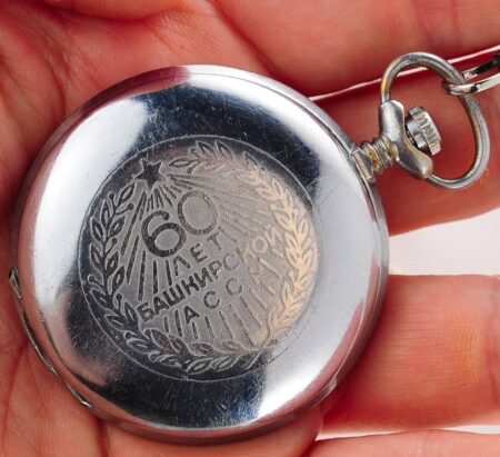 Motif commémoratif: Le 23 mars 1919, la Bachkirie devint la première République socialiste soviétique autonome créée au sein de la République socialiste fédérative soviétique de Russie. Cette montre célèbre les 60 ans de la RSSA.