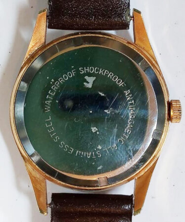 Mentions sur le cadran : 17 jewels au-dessus, shockproff au-dessous