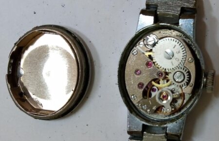 Montre pour dame, mécanique, avec bracelet intégré, produit par la Fabrique de Montres « Tchaïka » d’Ouglitch