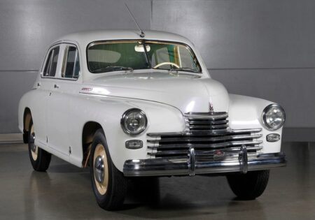Au sortir de la guerre, GAZ prend les dimensions d’un grand constructeur de poids lourds et de bus, la production de voitures individuelles étant marginale. Dès novembre 1943, les plans d’une nouvelle automobile commencèrent à être diffusés et un prototype roulait. Sa dénomination était GAZ M20 « Pobeda » (Victoire). 4 cylindres soviétique, carrosserie ponton, roues avant indépendantes, 4 freins à tambours assistés hydrauliquement, clignotants, deux essuie-glaces électriques ! Elle fut fabriquée jusqu’en 1958 à 241 497 exemplaires (dont 37 492 taxis).