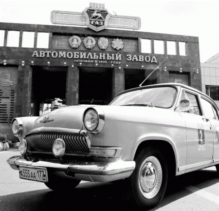 Cette fabrique GAZ était un des plus importants conglomérats militaro-industriel d’URSS. Outre les voitures, elle produisait des camions de divers types. Le logo de la marque est un cerf, animal représenté sur les armoiries de la ville.