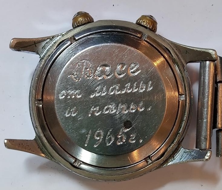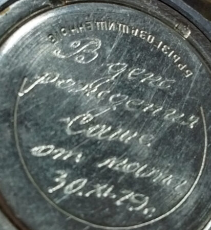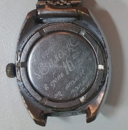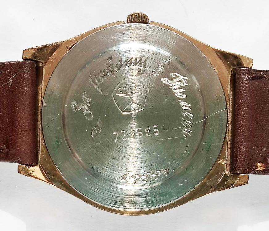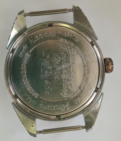 Les montres étaient un cadeau très apprécié en Soviétique, et une gravure personnalisée étaient souvent faite à cette occasion. Ces cadeaux pouvaient être fait dans le cercle familial, par la communauté de travail, où par la hiérarchie de l’administration, de l’unité militaire ou de l’entreprise, à un travailleur méritant. Voici quelques exemples de ma collection/