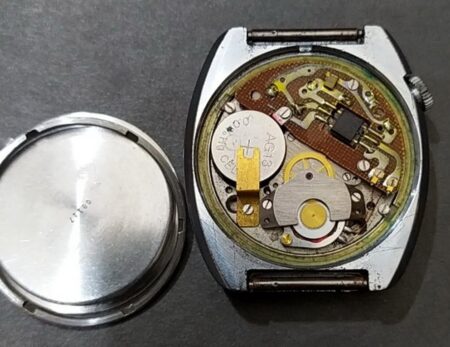Il n’y aura qu’un modèle d’Ekvar car très vite ces montres porteront simplement le logo Poljot avec, là où sur le cadran était inscrit « Ekvar », la mention « Quartz »: