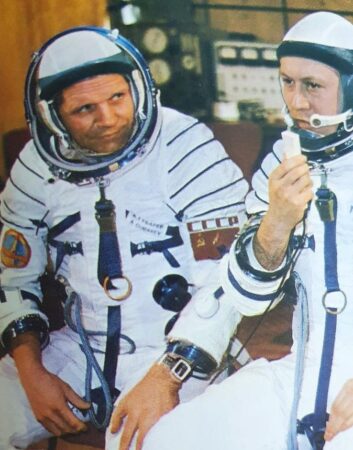 Une Ekvar au poignet d’Alexeï Alexandrovich Goubarev lors du vol de Soyouz 28 (du 2 au 10 mars 1978):