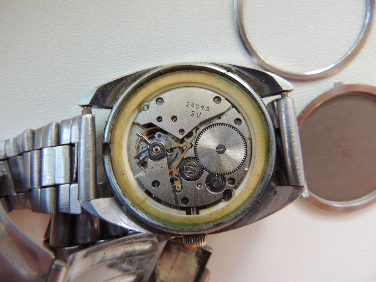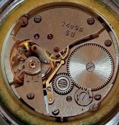 Mentions sur le calibre : logo Vostok sur la platine (B sans un cercle), 2409A et SU sur un pont.