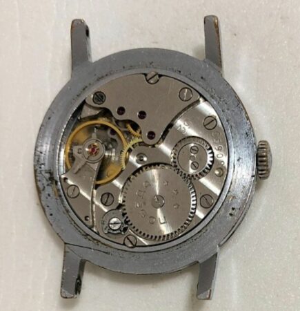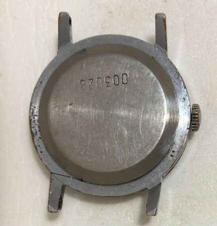 Mention sur le mécanisme: N° de série (65909) et 1-52 (1er trimestre 1952) sur un pont, Pobeda et trois étoiles sur le rochet. Ce mécanisme est composé de pièces diverses. Le pont marqué 1951 est bien antérieur au reste de la montre.