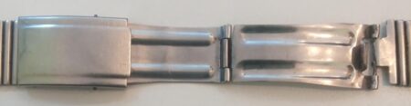 Bracelet : Métallique, soviétique, à boucle déployante, avec le logo de la Fabrique de Bijoux de Moscou et la mention нерж (inox):