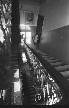 Cette célèbre photo de l’actrice Faïna Gueorguievna Ranevskaïa a été prise en 1968 par Vladimir Bogdanov. On reconnait le boîtier « crabe » typique des Kirovskie