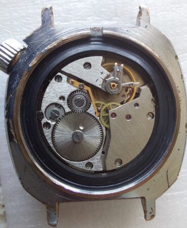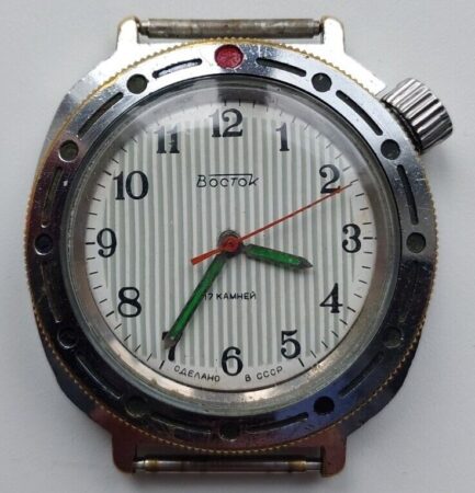 Boîtier : Laiton chromé, type 331, avec la lunette standard des Komandirskie et couronne à deux heures