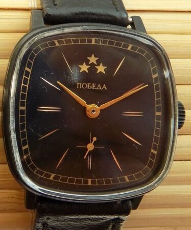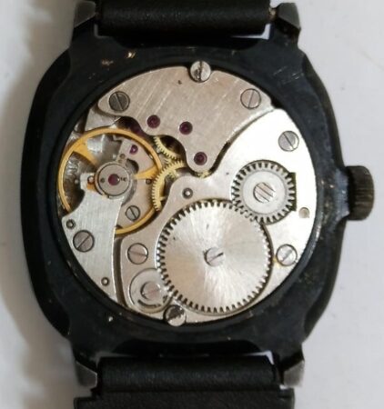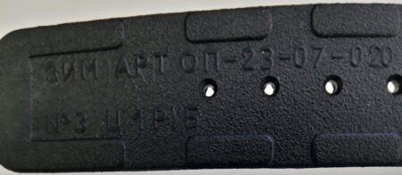 Avec un bracelet de plastique rigide marqué ЗИМ APT OП -23-07-020/916 N°3 Ц 1PYБ, conçu pour cette montre.