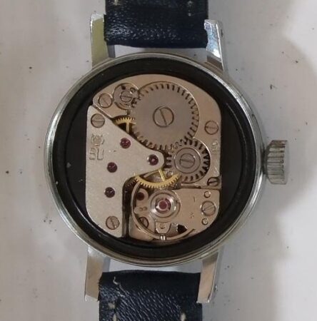Mentions sur le calibre : 1601 sur un pont, SU (soviet union) et le logo de la fabrique (un 2 dans un M) sur un autre