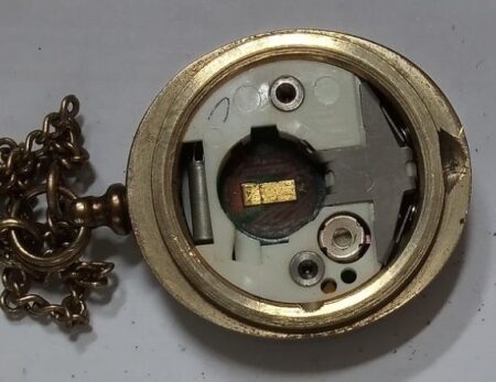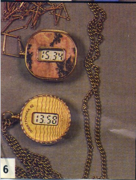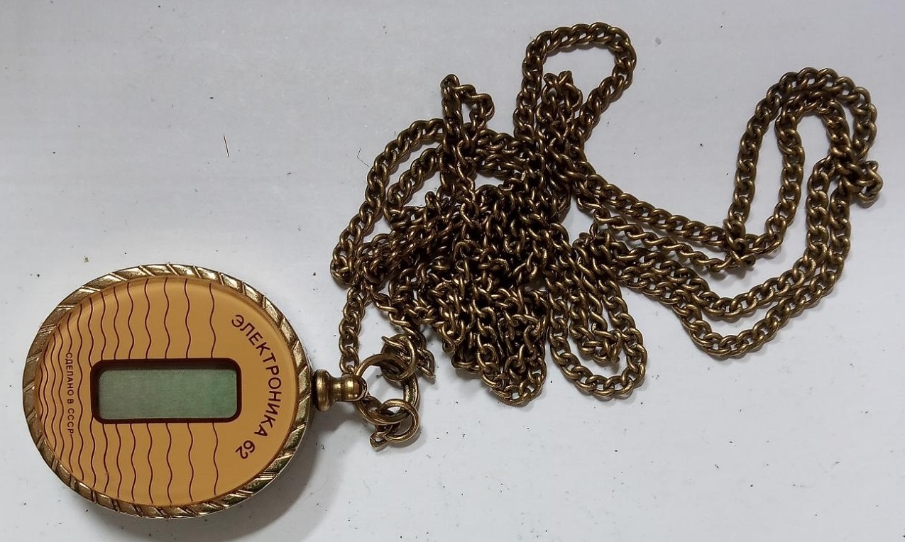 Montre pendentif, à quartz LCD, en pendentif, plaqué doré, de la Fabrique Elektronika de Minsk du Combinat électronique « Integral » à Minsk
