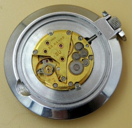 Mécanisme : Luch 2209 à 23 rubis (métal jaune).