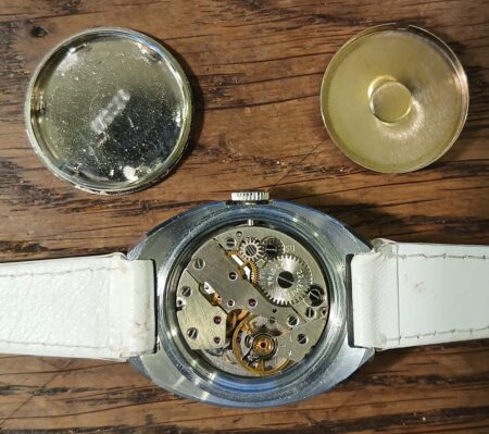 Mentions sur le calibre : Z2014A et 22 jewels sur le rochet, SU (Soviet Union) sur le pont