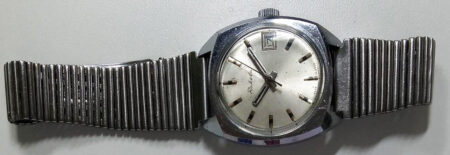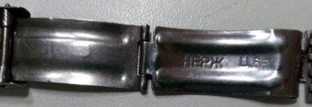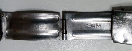Métallique soviétique à boucle déployante de la Fabrique Maslenikov (ZIM) marquée des mention ЗИМ (ZIM) et нерж (inox):