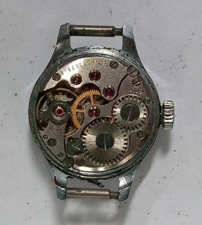 Mentions sur le calibre : n° de série (9313928) et 17 JEWEL sur un pont, 1601A sur un autre. Côtes de Genève (profondes rayures)