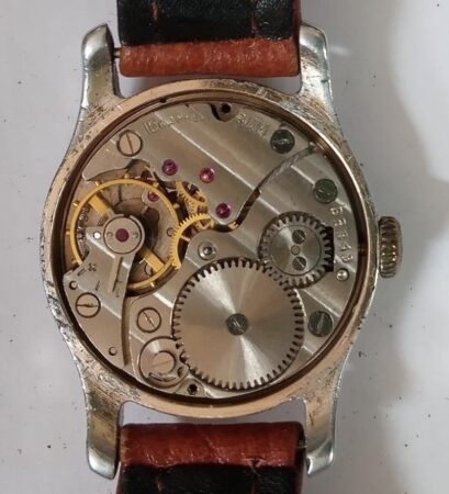 Mentions sur le calibre : ЗИМ et 15 камня (15 rubis) sur un pont, n° de série (86849) sur un autre, 2602 sur la platine. Côtes de Genève