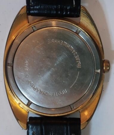 Gravure sur le fond : противоударные бaлaнз (mouvement antichoc) пылевлагозащищенные (étanche à l’eau et à la poussière) (en cercle), perlage à l’intérieur