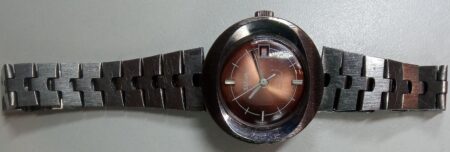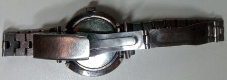 Avec un bracelet métallique soviétique 12mm, avec logo Zaria et mention нерж сталь (acier inox) et Ц5р30к (5 roubles 30 kopecks):