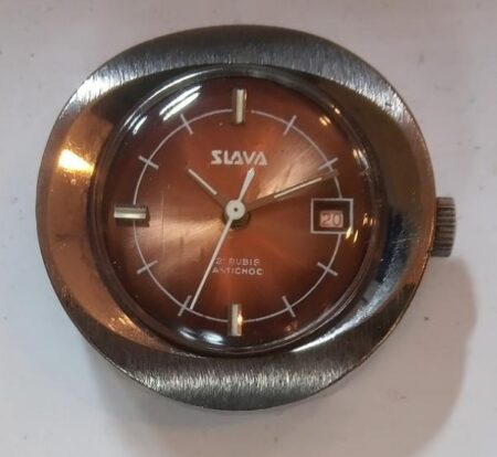 Montre bracelet pour dame fabriquée en France par la Société anonyme Slava (Besançon) avec un calibre de la Fabrique de montres d’Ouglitch