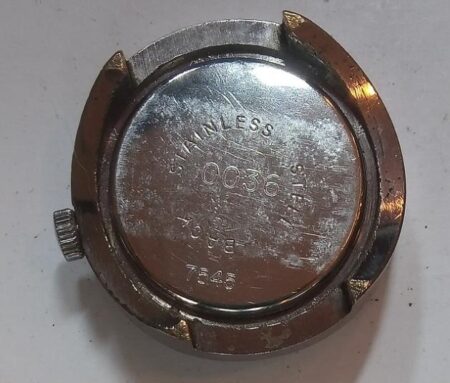 Gravure sur le fond : stainless steel back (en cercle entourant ce n°:) 0036, le tout surmontant cet autre n° 7545