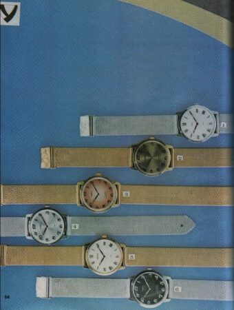 Ce modèle est issus d’une longue lignée produite de la seconde moitié des années ’70 à la fin des années ’80 (et peut-être même au-delà). Le même boitier 181 (ou sa version dorée, le 183) a été assorti par d’un grand nombre de cadrans différents et de plusieurs jeux d’aiguilles. Voici quelques modèles au catalogues général 1977 :