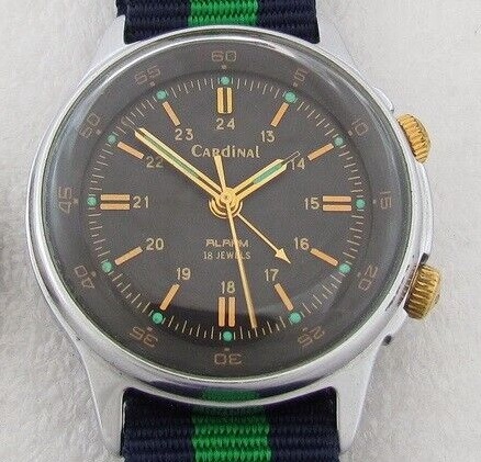 Montre bracelet à alarme, pour l’exportation au Canada, de la 1ère Fabrique de Montres de Moscou.