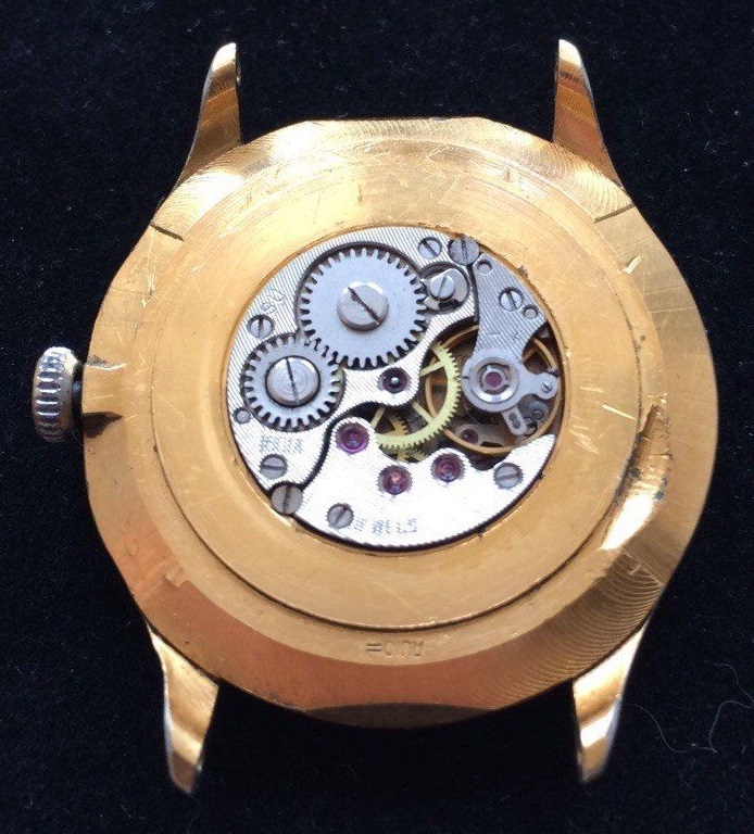 Mentions sur le calibre : 1601A et SU (pour Soviet Union)sur un pont, 17 jewels sur un autre, dernier logo Tchaïka (T dans un écu) sur la platine. Striures en guise de Côtes de Genève