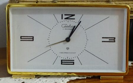 Réveil de la 2e Fabrique de Montre de Moscou pour l’exportation.Marque SlavaModèle: 5671/124049Mécanisme 5671 à 11 rubis.Produit dans les années ’70