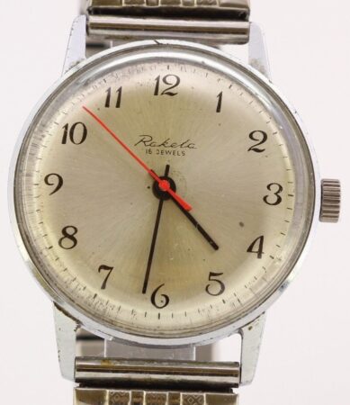 Mentions sur le calibre : n° de série (73978) sur la platine, logo de Raketa (la raquette symbolisée), 16 камней et 2609 sur le pont