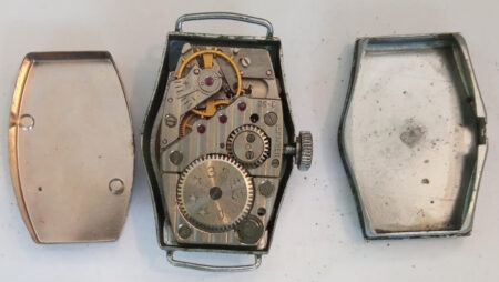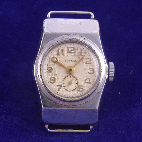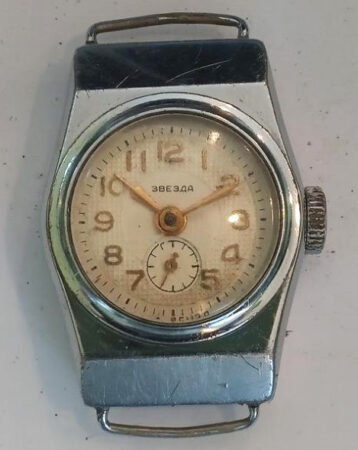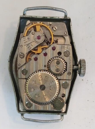 Mécanisme : Ce modèle n’avait alors pas de nom, c’est de mécanisme pour Zvezda (le rochet est marqué ainsi) ; c’est version soviétique du Lip T18 à 15 rubis qui sera appelé ultérieurement 1802.