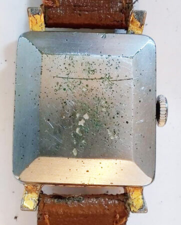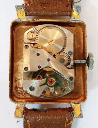 Boîtier : Carré, plaqué or avec poinçon AU12.5, à fond clipsé