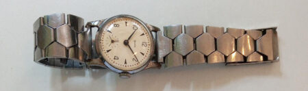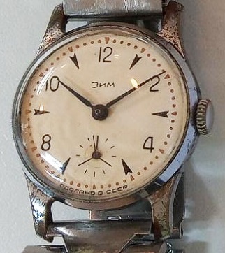 Avec un bracelet métallique, soviétique, pour entre-cornes de 16mm, à maillons hexagonaux, à boucle déployante estampée à l’extérieur de la marque ЗИМ: