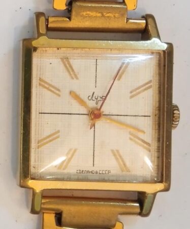 Mécanisme : Luch 2209 à 23 rubis (métal jaune).