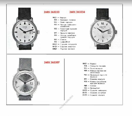 Mentions sur le calibre : n¨de série (325205) sur un pont, logo Vostok (B dans un cercle) sur un autre