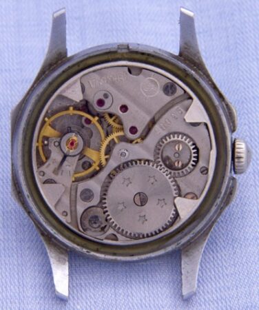 Mentions sur le calibre : n° de série (78592) sur un pont, ancien logo de la fabrique de Tchistopol et 17 камeн sur un autre, 5 étoiles sur le rochet, cotes de Genèves.