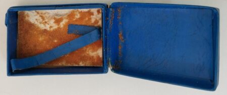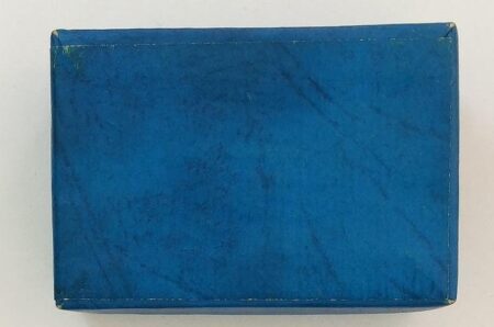 Une boîte rectangulaire de carton bleu (6,6cm X 4,2cm X 2,2cm) :